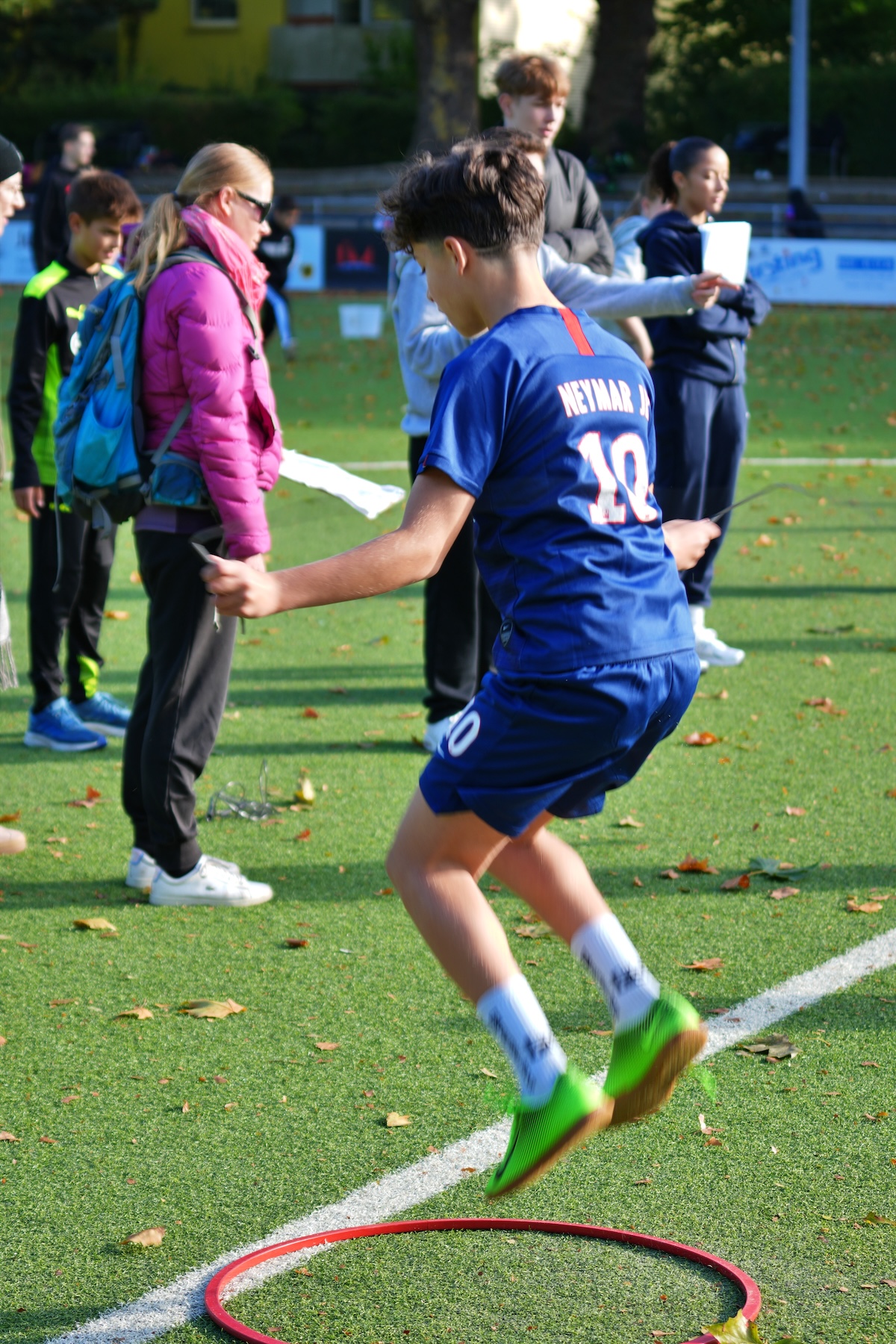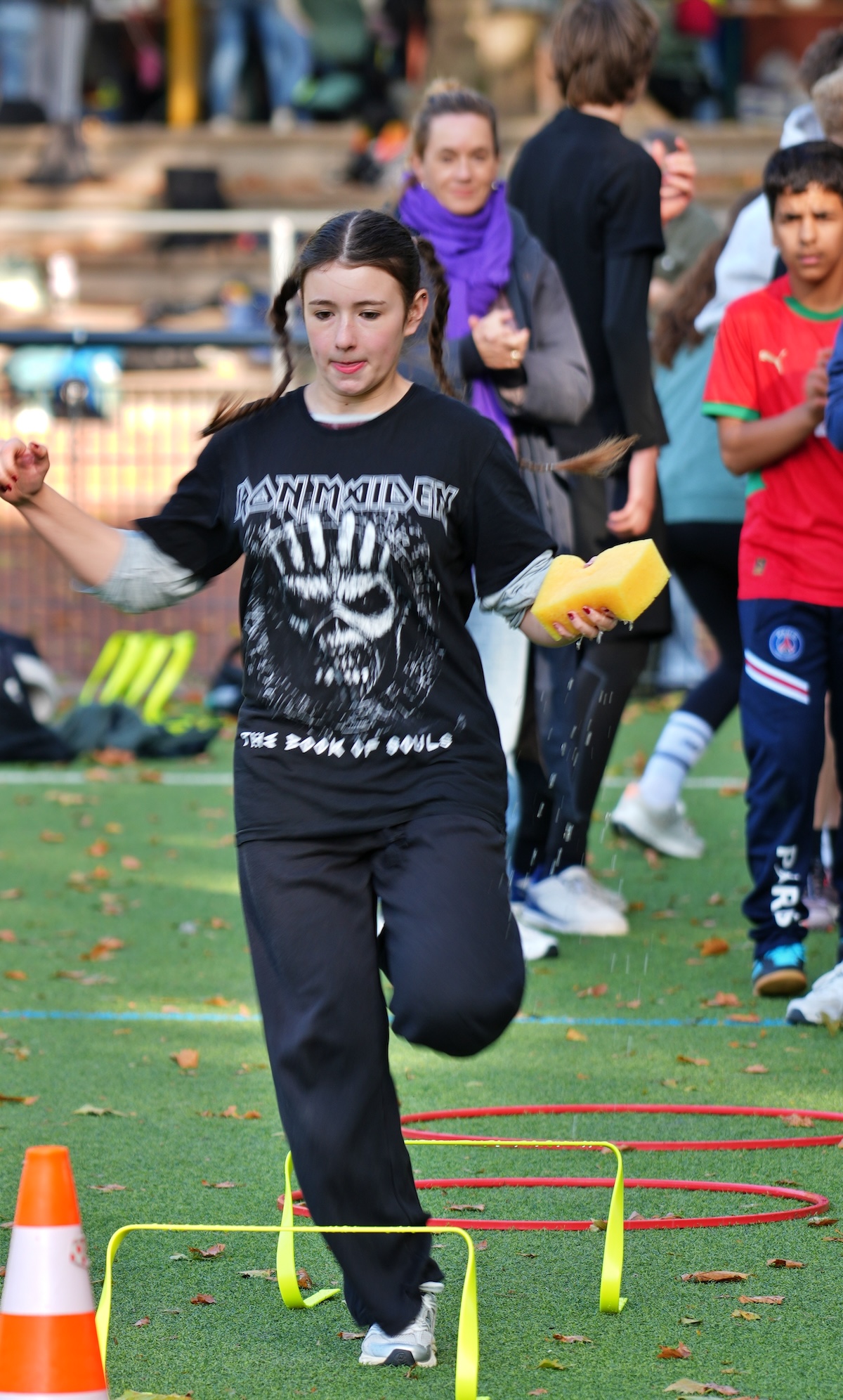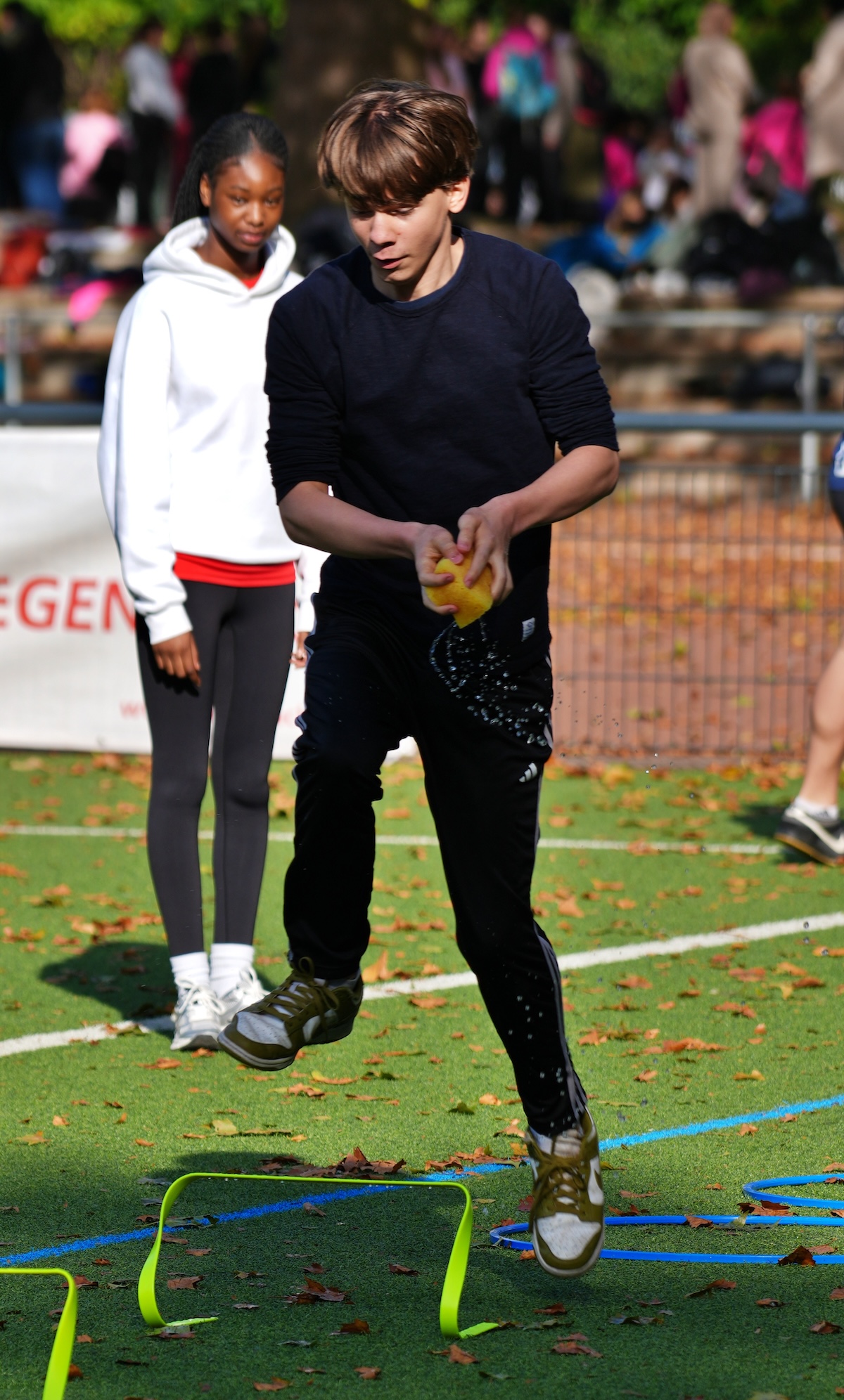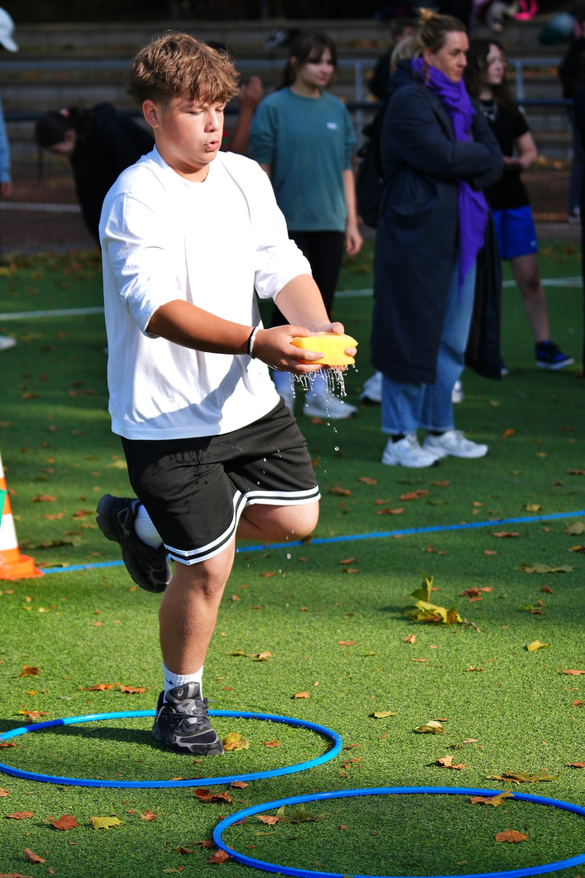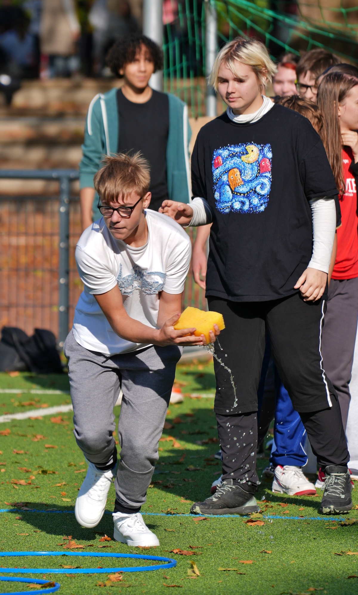 Der Klassenwettkampf brachte jede Menge Spannung und Begeisterung: Ob beim Weitsprung, Sackhüpfen, Wassertransport oder Turmball – überall konnte man Freude, Einsatz und gegenseitige Unterstützung sehen. Besonders schön war der Zusammenhalt innerhalb der Klassen, die sich anfeuerten und gemeinsam um jeden Punkt kämpften.
